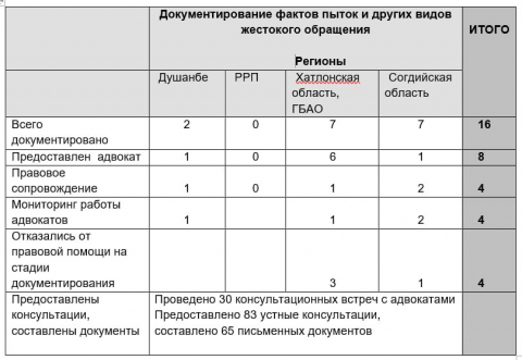 Коалиция гражданского общества против пыток и безнаказанности в Таджикистане оказывает бесплатную правовую и реабилитационную (медицинскую и психосоциальную) помощь.