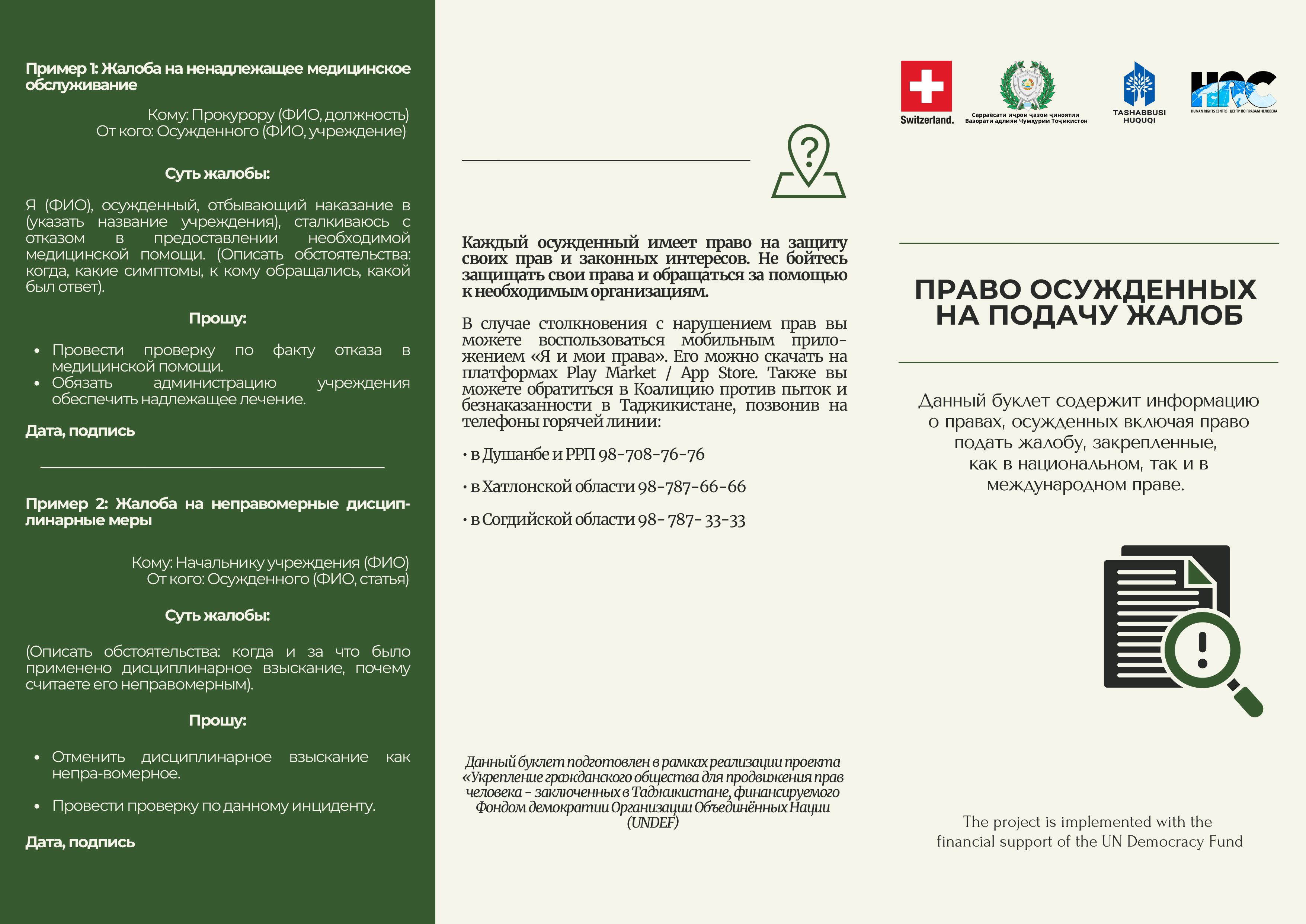 Данный буклет содержит информацию о правах, осужденных включая право подать жалобу, закрепленные, как в национальном, так и в международном праве.