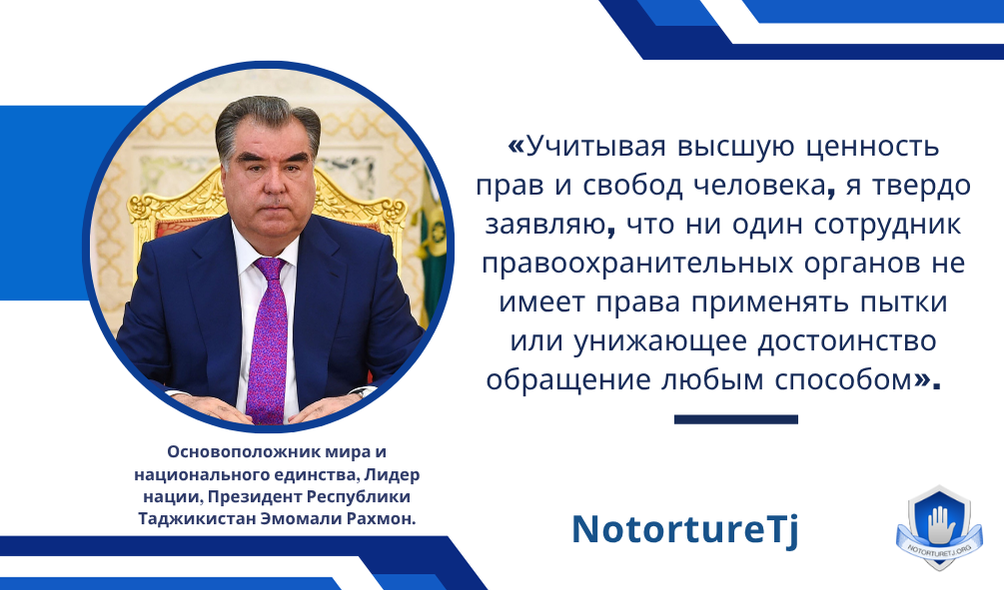 «Пусть 100 преступлений останутся нераскрытыми, но никогда не прибегайте к применению пыток». — Министр внутренних дел Таджикистан, Рамазон Рахимзода[6].