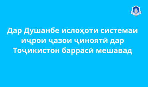 15-уми июли соли 2025 дар шаҳри Душанбе мизи мудаввар бахшида ба ислоҳоти системи иҷрои ҷазои ҷиноятӣ дар Тоҷикистон баргузор мегардад. Он аз ҷониби ташкилоти ҷамъиятии «Маркази ҳуқуқи инсон» бо дастгирии Дафтари Швейтсария оид ба ҳамкорӣ ва Фонди демократияи СММ (ЮНДЕФ) ташкил карда мешавад.