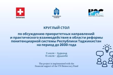 Рӯзи 11-уми июл дар шаҳри Хуҷанд ва 15-уми июл дар шаҳри Душанбе ТҶ “Маркази ҳуқуқи инсон” ва ФҶ “Ташаббуси ҳуқуқӣ” мизҳои мудаввар оид ба масъалаҳои афзалиятнок ва ҳамкориҳои амалӣ дар самти ислоҳоти системаи пенитенсиарии Ҷумҳурии Тоҷикистон барои давраи то соли 2030-ро баргузор мекунанд.