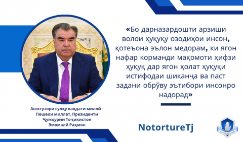 Ягон нафар корманди мақомоти ҳифзи ҳуқуқ ҳуқуқи истифодаи шиканҷаро надорад