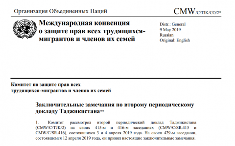 Комитет по защите прав всех трудящихся-мигрантов и членов их семей Заключительные замечания по второму периодическому докладу Таджикистана