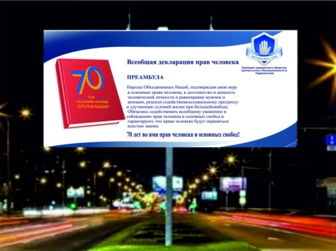 В течение 15 дней, начиная с 5 декабря, в различных районах Душанбе будут размещены баннеры на таджикском языке с текстом статей Всеобщей декларации прав человека и по два комментария к каждой из них – государственного служащего и правозащитника.