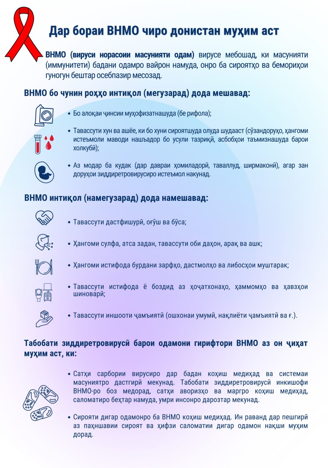 Плакати иттилоотии «Дар бораи ВНМО чиро донистан муҳим аст» дар доираи Стратегияи қабулшудаи ислоҳоти низоми ҷазои ҷиноии Ҷумҳурии Тоҷикистон то соли 2030 ва бо дастгирии молиявии Ҳукумати Швейтсария дар Тоҷикистон (SDC) ва Хазинаи демократияи СММ (UNDEF) таҳия шудааст.