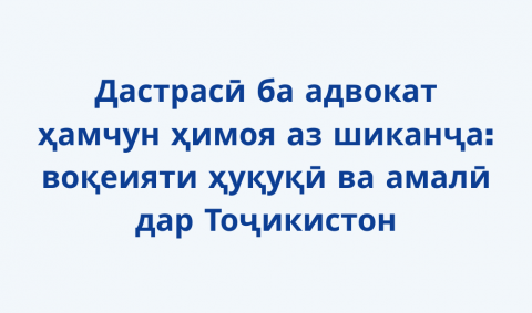 Конститутсияи Тоҷикистон ба ҳар як нафар ҳуқуқ ба ҳимоя ва ёрии ҳуқуқиро кафолат медиҳад. Кодекси мурофиавии ҷиноятӣ фавран пас аз боздошт даъват кардани адвокатро иҷозат медиҳад, инчунин истифодаи далелҳои бо шиканҷа ба даст овардашударо ба таври возеҳ манъ мекунад.