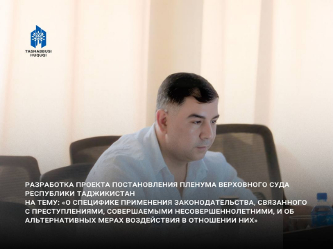 Дар доираи чорабинӣ лоиҳаи қарори пленуми Суди Олии Ҷумҳурии Тоҷикистон дар мавзӯи «Дар бораи хусусиятҳои татбиқи қонунгузории вобаста ба ҷиноятҳои содирнамудаи ноболиғон ва дар бораи чораҳои алтернативии муносибат нисбати онҳо» омода карда шуд.