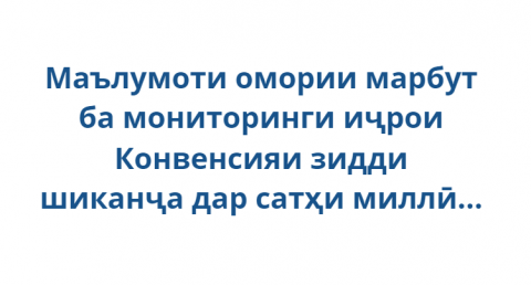 Маълумоти оморӣ ва нишондиҳандаҳо дар соҳаи ҳуқуқи инсон дар ҷараёни иҷрои уҳдадориҳои байналмилалӣ дар соҳаи ҳуқуқи инсон нақши муҳимро мебозанд. Кумитаи зидди шиканҷа ба Ҳукумати Ҷумҳурии Тоҷикистон тавсия дод, ки маълумоти омории марбут ба мониторинги иҷрои Конвенсияи зидди шиканҷа ва намуди дигари муносибат ва ҷазои бераҳмона, ғайриинсонӣ ва таҳқиркунандаи шаъну шараф дар сатҳи миллӣ, аз ҷумла маълумот дар бораи шикоятҳо, тафтишоти гузаронидашуда, парвандаҳои оғозшуда ва ҳукмҳои айбдоркунанда вобаста ба ҳолатҳои шиканҷа ва муносибати бераҳмона, савдои одамон ва зўроварии ҷисмонӣ ва шаҳвонӣ, инчунин оид ба воситаҳои ҷуброн, махсусан маълумот дар бораи товони зарари ба қурбониён расонидашуда ва тавонбахшӣ ҷамъоварӣ кунад.