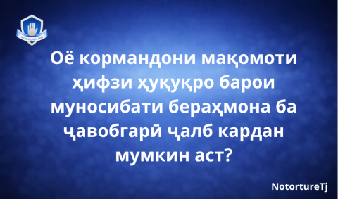 САВОЛ: Оё кормандони мақомоти ҳифзи ҳуқуқро барои муносибати бераҳмона ба ҷавобгарӣ ҷалб кардан мумкин аст?