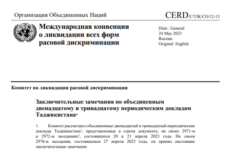 Заключительные замечания по объединенным двенадцатому и тринадцатому периодическим докладам Таджикистана
